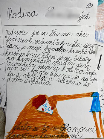 4. Text a výtvarné zachycení místa spojte do celku. Můžete například nalepit kresbu nebo fotografii na podkladový papír a přidat ní vyprávění.